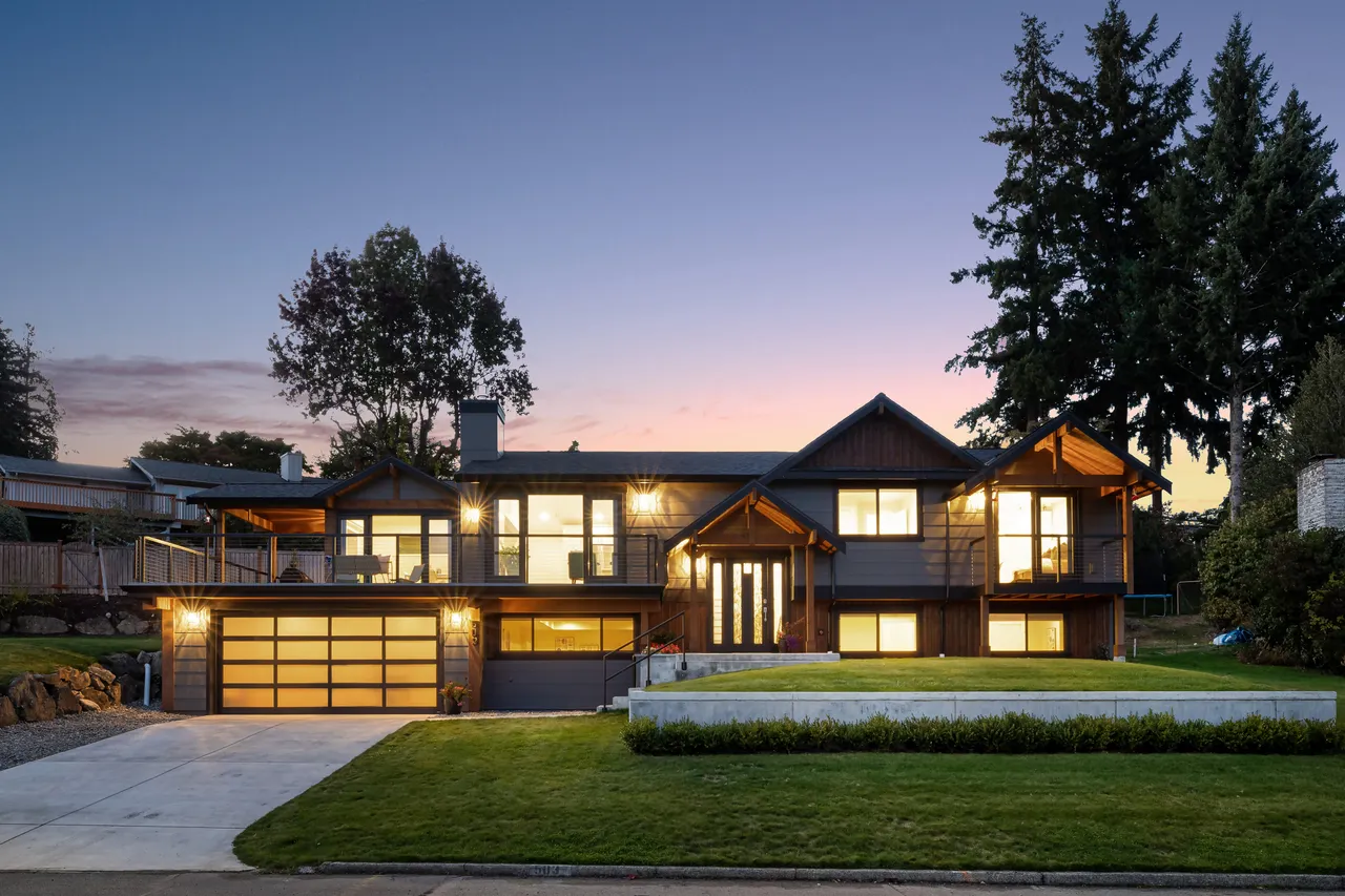 Stunning and completely remodeled mid-century modern in exclusive Lochmoor! Enjoy sweeping views from almost every room of Lake Sammamish and...